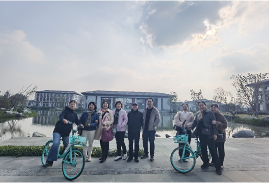 眉山新校区。新校区负责人热情接待了党支部一行,并带领大家参观了眉山新校区行政大楼。在参观过程中,负责人详细介绍了新校区的整体建设规划、先进的教学配套设施以及未来在人才培养、学科建设方面的发展定位,让在场党员对现代化高等教育校园的建设与发展有了直观且深入的认识。随后,党员们在新校区负责人的带领下漫步校园,畅谈教育资源合理配置、创新人才培养模式的思考与感悟。
