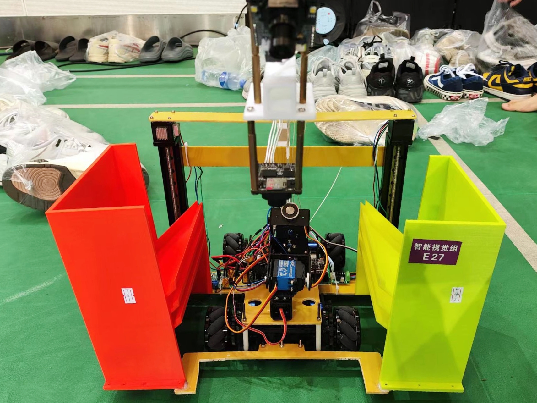 彭耐晓、唐海峰和史斯予三位同学组成了智能视觉组。他们制作的车模依靠人工神经网络模型完成目标搜索、识别与搬运等多项指定任务,凭借出色的技术表现和稳定的系统运行,在决赛中成功夺得全国二等奖。